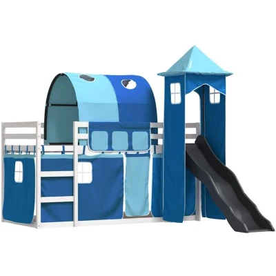 vidaXL Bunk Bed without Mattress with Slide and Curtains Blue 90x190 cm Single