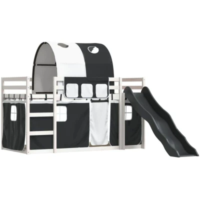 This wooden bunk bed is elegant and functional, making it a perfect addition to any room with limited space. Solid pine wood: This bunk bed is made of solid pine wood for stability and durability. Pine wood has a straight grain, and the knots give the material its signature, rustic look.Great fun: You can combine the curtains with the low bunk bed to create your child's secret base, providing great fun at bedtime and adding a focal point to the bedroom!Safety guardrails: The top bunk comes with safety guardrails on all 4 sides, so your child can sleep without worrying about falling off.Convenient ladder and slide: This double bunk bed has a fun slide that brings joy and turns their room into an indoor playground. The combination of a climbing ladder and slide makes bedtime livelier and more interesting for children.Sturdy slats: The plywood slats provide good weight distribution, ensuring that the mattress stays in place with every twist and turn of your body during sleep. Good to know:A mattress is not included with this bed. We do offer a various selection of mattresses. You can check our shop for a matching mattress. Warning:To prevent it from tipping over, this product must be used with the provided wall attachment device.