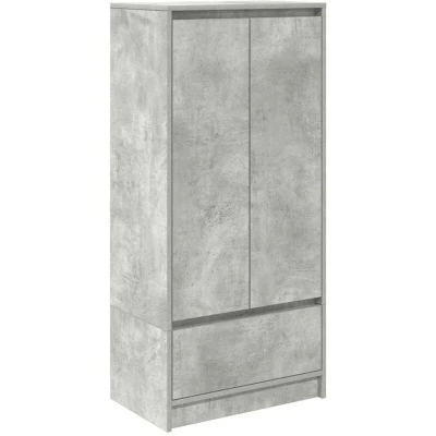 ManoManoGeneral description The Cabinet with Drawer in Concrete Grey offers versatile storage solutions, keeping your space tidy and organized while adding both practicality and aesthetics to your living area. It features ample storage space with doors, a shelf, and a drawer, ensuring your items remain well-organized. The interior shelf helps classify your possessions, enhancing organization and cleanliness, while the bottom drawer provides additional space for various items. Its adaptable design complements various styles, making it a great choice for storing books, linens, or office supplies. Technical specifications Colour: Concrete grey Material: Engineered wood Overall dimensions: 55.5 x 34 x 119.5 cm (W x D x H) Drawer dimensions: 52 x 28.5 x 19.5 cm (W x D x H) Number of doors: 2 Number of drawers: 1 Number of shelves: 2 Max. weight capacity: 60 kg Max. weight capacity of shelf: 20 kg Max. weight capacity of drawer: 5 kg Assembly required: Yes Usage The storage cabinet is perfect for