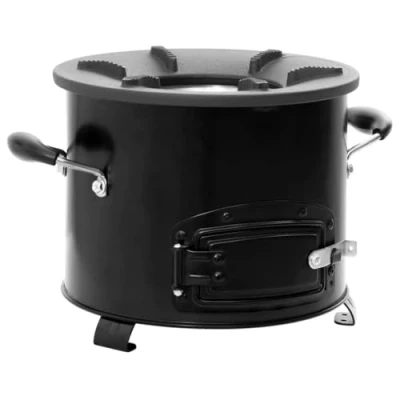 VidaXLThis camping wood stove serves as a cooking utensil when you have outdoor activities while creating some extra warmth and a cosy atmosphere when it gets colder. Cast iron hearth: The fireplace features a durable, six-prong cast iron hearth frame. The low-profile design reduces the risk of chipping and can support a variety of cookware to suit all your outdoor cooking needs.Door design: The wood-burning stove is equipped with a door at the bottom, which is suitable for placing wood and even makes the camping stove function in windy weather perfectly.Convenient handles: The patio heater for camping is equipped with 2 handles, allowing you to move the outdoor heater safely. Note:Each product comes with an assembly manual in the box for easy assembly.The product must be only used outdoors. To avoid injuries and burns, do not touch the product when there is still burning wood inside or shortly after it.