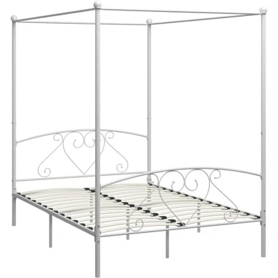 vidaXL Canopy Bed Frame Double Solid Base Bedroom Furniture White Metal 140x200cm