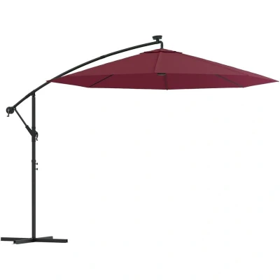 vidaXL Cantilever Garden Parasol with LED Lights and Steel Pole Wine Red