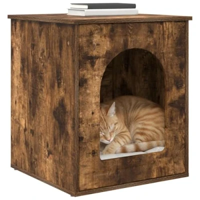 vidaXL Cat House Smoked Oak 53 x 52 62 cm Engineered Wood