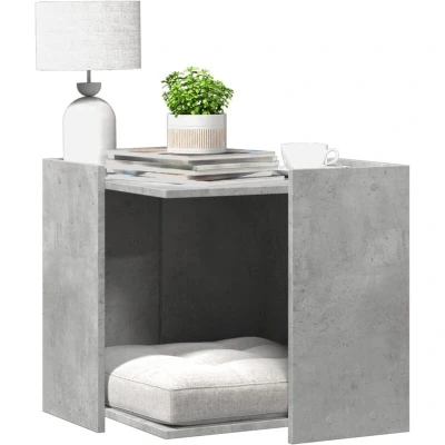 vidaXL Cat Litter Box Enclosure Engineered Wood Hidden House Concrete Grey Bed/Side Table Combination 53x53x51 cm