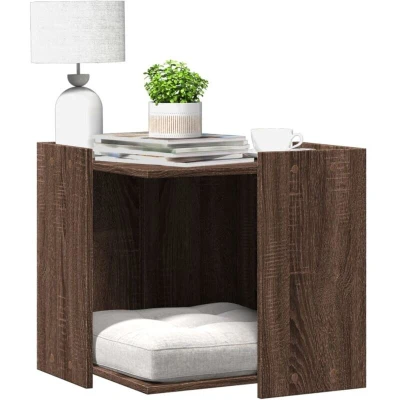 vidaXL Cat Litter Box Enclosure House Brown Oak Engineered Wood Space Saving House/Side Table Combo 53x53x51 cm