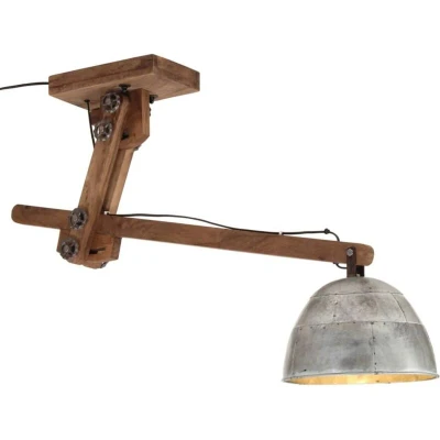 General description This ceiling lamp is a striking addition to any living room, dining room, office, or similar space. Its industrial style, combined with a vintage silver finish, makes it a perfect fit for both rural and industrial interiors. Technical specifications Colour: Vintage silver Material: Iron and solid mango wood Overall dimensions: 105 x 30 x 65-108 cm (L x W x H) Lampshade diameter: 30 cm Socket type: E27 Maximum power: 25 W Low voltage directive Usage The ceiling light features an E27 socket, allowing you to choose and install E27 bulbs with various light colors to create a relaxing atmosphere. This is an industrial-style lamp with unique imperfections in the lampshade, adding character and a rough look to the design. Note: Bulbs are not included. Other information This appliance is not intended for use by persons (including children) with reduced physical, sensory, or mental capabilities, or lack of experience and knowledge, unless they have been given supervision or