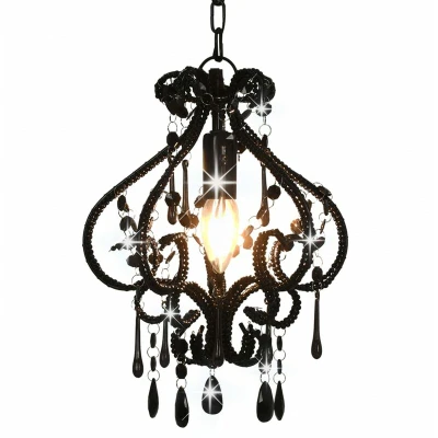 vidaXL Ceiling Lamp with Beads Home Decoration Elegant Charm Chandelier Living Room Bedroom Hanging Pendant Light Black Round E14