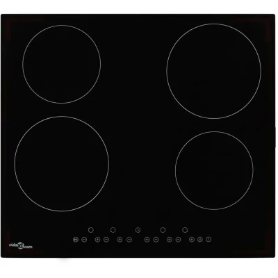 ManoManoGeneral description The vidaXL Ceramic Hob with 4 Burners offers a stylish and efficient cooking solution for your kitchen. Featuring sensor touch control, this built-in hob is user-friendly and designed for safety and convenience. With four auto hotplates and nine cooking levels, it allows for versatile cooking options, whether you need to use the burners individually or simultaneously. The hob is constructed from heat-resistant glass, ensuring durability and safety during use. Technical specifications Colour: Black Material: Ceramic and heat-resistant glass Dimensions: 590 x 520 x 52 mm (W x D x H) Built-in dimensions: 560 x 500 mm (W x D) Total power: 6000 W Power supply: 220-240 V~, 50/60 Hz Power level: 9 Power consumption in off mode: 0.3 W Other information Features: Sensor touch control, individual timer (up to 99 minutes), pause function, residual heat warnings, child safety lock, overheat protection, overflow safety protection, automatic shut-down design. Warning: It is