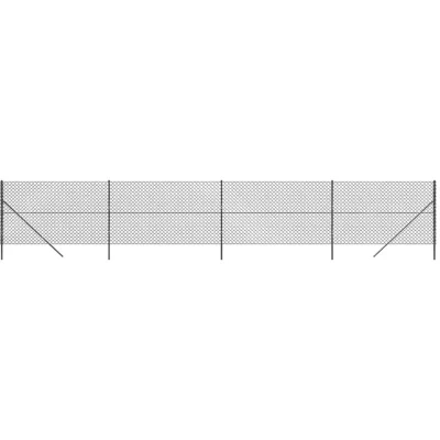 General description This versatile chain link fence is ideal for creating a secure, long-lasting barrier around your property. It can also be used to erect an animal enclosure. Technical specifications Colour: Anthracite Material: Galvanised steel with PVC coating Fence size: 2 x 10 m (H x L) Fence roll size: 1 x 20 m (H x L) Mesh size: 60 x 60 mm Main wire diameter: 1.3/2.2 mm (1.3 mm steel wire; 2.2 mm including the PVC coating) Edge wire diameter: 1.6/2.5 mm (1.6 mm steel wire; 2.5 mm including the PVC coating) Straight post and strut post dimensions: 32 mm x 2.5 m (Diameter x H) Binding wire dimensions: 1.2/1.8 mm x 30 m (Diameter x L) Assembly required: Yes Compatibility and accessories Delivery contains: 1 x Chain link fence roll 5 x Straight post with cap and wire holders 2 x Strut post with wire holder 2 x Diagonal strut post holder 1 x Binding wire 1 x Pair of pliers 1 x Set of M nails Installation To achieve the full height, the fence mesh needs to be assembled by connecting