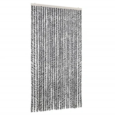 vidaXL Chenille Fly Curtain Screen Insect Door Barrier in Grey/Black/White, 100x200cm, Includes Hooks, Easy Clean