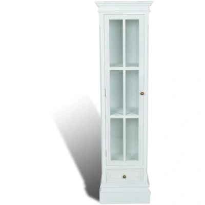 VidaXLThis tall spice cabinet has three display shelves and 1 bottom drawer. It has a door for the display shelves to keep away dirts and dusts. It is a great organiser in the office, living room, bedroom, or any other room in the house. The cabinet is made of durable, light weight MDF, painted in white and distressed for a primitive, vintage, aged appearance. Its versatile and stylish design make it a great fixture in your home. Note: Since this furniture is hand-crafted, made of wood and painted white, it may come with a small defect.