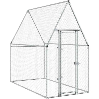 vidaXL Chicken Coop Silver Galvanised Steel Hen House/Poultry Cage with Water Resistant Cover, 200x100x190 cm, Lockable Door for Outdoor Use