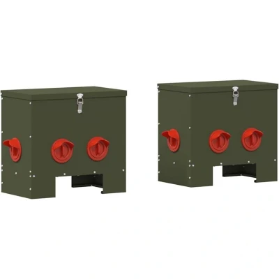 vidaXL Chicken Feeder 2 pcs Olive Green 40.5 x 25 38 cm