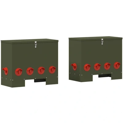 vidaXL Chicken Feeder 2 pcs Olive Green 60.5 x 29 51 cm