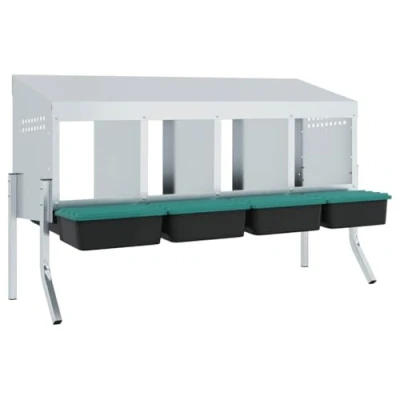 vidaXL Chicken Nesting Box 4 Compartments Galvanised Steel With Legs Indoor/Outdoor Use Effortless Egg Collection Through Easy Lift Lid