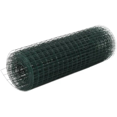 vidaXL Chicken Wire Fence PVC Coated Steel with Square Mesh Poultry Confinement and Protective Fencing Green Size: 25x0.5 m