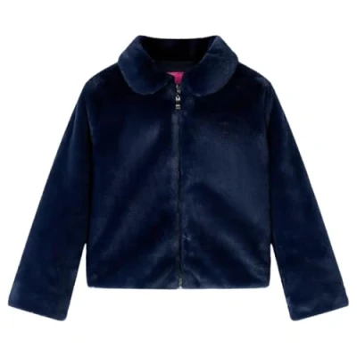 vidaXL Children's Navy Faux Fur Coat, Size 116, Comfortable Long Sleeve Jacket for Kids Aged 5 6 with Zip Fastening