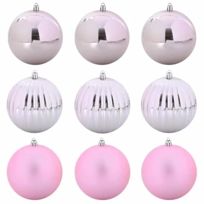 AmazonvidaXL Christmas Bauble Set 9 pcs Pink, Living Room Decor, Traditional Christmas Baubles, Modern Ornaments, Holiday Tree, Elegant Seasonal Decorations