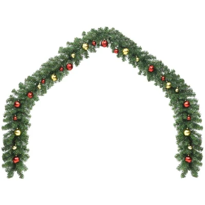 VidaXLThis lusciously thick Christmas garland with baubles is an ideal addition for your banister, ceiling, fireplace, or windows and will create the perfect atmosphere for this coming Christmas. It will look spectacular wherever you hang it. Made of PVC, this lovely Christmas decoration is weather resistant, making it suitable for both indoor and outdoor use. In the house, the garland will also serve as a real eye-catcher. While not in use, it can be easily stored for next holiday's use. Assembly is easy. Delivery includes one garland, 4 cm baubles and 6 cm baubles. Create the perfect holiday ambiance with our lovely Christmas garland!
