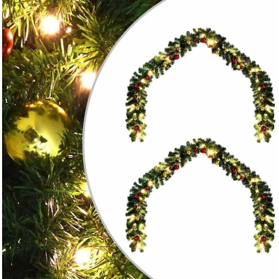 ManoManoGeneral description This delightful Modern Christmas Garland immediately evokes the warmth and charm of traditional holiday decorating. Designed for seasonal use, it encircles your environment with lush greenery, setting a joyous tone in any space. With its graceful aesthetic, it can be styled effortlessly across mantels, stairways, or even outdoors, creating a consistently enchanting atmosphere. Technical specifications Colour: Green Material: PVC Overall dimensions: 2000 x 24 cm (L x W) Number of branches: 3600 Lights type: LED string lights Number of LEDs: 600 Power source: USB Weight: Lightweight Odour free Weather resistant Indoor / outdoor: Indoor & outdoor Delivery contains: 2 x 20 m Garland, 128 x 4 cm Bauble (64 x gold and 64 x red), 128 x 6 cm Bauble (64 x gold and 64 x red), 1 x LED string Assembly required: Yes EAN: 8721288821850 SKU: 42016693 Brand: vidaXL Usage Ideal for adding a touch of festive elegance to living rooms, gardens, or terraces. Perfect for doorways,