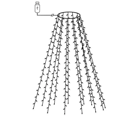 These LED tree lights are specifically designed for decorating your Christmas tree and create a nice atmosphere. The lights consist of 150 high-powered LEDs, which are very energy efficient and emit a bright light. Designed with 8 different lighting effects: a combination of all the effects, slow-glow, twinkle/flash, in wave, chasing/running water, sequential, steady on and slow fade, it beautifully lights up and creates a magical holiday atmosphere. This lovely Christmas decoration is water-resistant and therefore suitable for both indoor and outdoor use. You could easily place this decoration onto the top of your Christmas tree and its light strings will naturally drape to the floor. It will be a real eye-catcher, especially in the evening, and also serves as a cosy source of ambient light. While not in use, these LED lights can be easily stored for next holiday's use. Have fun during your holiday with these LED tree lights! Please note that the Christmas tree and baubles are not included in delivery. The included USB is not waterproof so this part has to avoid the water, but thanks to the 5 m cable the item can be used outdoors as the cable and product are water-resistant. Note: The product has a USB connector, but the certified 5V USB power source is not included.