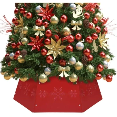 General description Add an extra holiday charm to your Christmas tree with this beautiful red tree skirt. This tree collar enhances the appearance of your Christmas tree, creating a perfect holiday atmosphere. Made from sturdy and durable metal, it can be easily stored after use for the next holiday season. Technical specifications Colour: Red Material: Metal Top diameter: 52.5 cm Bottom diameter: 68 cm Height: 25 cm Assembly required: Yes Other information