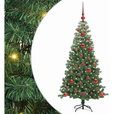 ManoManoGeneral description This cone-shaped PVC Artificial Christmas Tree brings modern elegance to your seasonal decor with its sleek and simple design. It enhances any living space or garden, creating a festive presence with minimal ornamentation and maximum impact. Its visually appealing structure can serve as a centerpiece for gatherings, creating a warm and inviting atmosphere while maintaining a stylish appearance that aligns with contemporary aesthetics. Technical specifications Colour: Green Material: PVC Tree height: 120 cm Bottom diameter: 65 cm Stand size: 30 x 30 cm Lights type: LED strip lights Lights color: Warm white Number of LEDs: 150 Distance between LEDs: 1000 cm LED flash modes: 8 Power source: USB Voltage: 5 V Wattage: 5 W Indoor / outdoor: Indoor and sheltered outdoor use Assembly required: Yes Delivery contains: 1 x Christmas tree, 1 x Stand, 1 x LED string light, 1 x Peak, 20 x 3 cm ball, 21 x 4 cm ball, 20 x 6 cm ball EAN: 8721288993182 SKU: 3396358 Brand: vidaXL