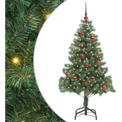 ManoManoGeneral description This cone-shaped PVC Artificial Christmas Tree brings modern elegance to your seasonal decor with its sleek and simple design. It enhances any living space or garden, creating a festive presence with minimal ornamentation and maximum impact. Its visually appealing structure can serve as a centerpiece for gatherings, creating a warm and inviting atmosphere while maintaining a stylish appearance that aligns with contemporary aesthetics. Technical specifications Colour: Green Material: PVC Tree height: 150 cm Bottom diameter: 80 cm Stand size: 35 x 35 cm Lights type: LED strip lights Lights color: Warm white Number of LEDs: 150 Distance between LEDs: 1000 cm LED flash modes: 8 Power source: USB Voltage: 5 V Wattage: 5 W Indoor / outdoor: Indoor and sheltered outdoor use Assembly required: Yes Delivery contains: 1 x Christmas tree, 1 x Stand, 1 x LED string light, 1 x Peak, 20 x 3 cm ball, 21 x 4 cm ball, 20 x 6 cm ball EAN: 8721288993274 SKU: 3396367 Brand: vidaXL