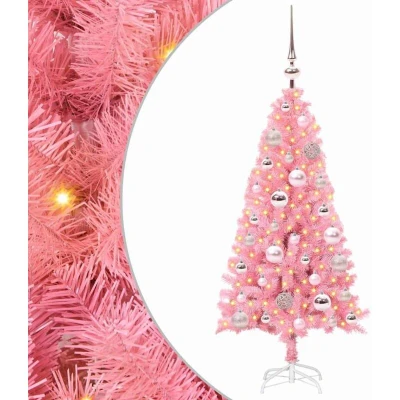 vidaXL Christmas Tree with 150 LEDs Stand Pink 120 cm PVC