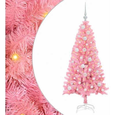 vidaXL Christmas Tree with 150 LEDs Stand Pink 120 cm PVC