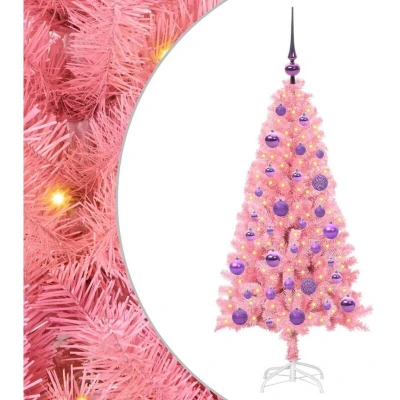 vidaXL Christmas Tree with 150 LEDs Stand Pink 120 cm PVC