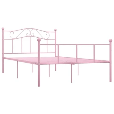 vidaXL Classic Pink Metal Bed Frame for Modern Bedroom Decor, Comfortable Double Bed, Easy Assembly, 140x200 cm Mattress Compatible