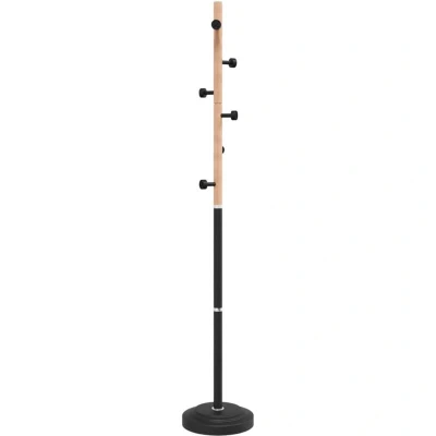 ManoManoGeneral description This practical coat stand will keep your belongings organized and easily accessible. Made of sturdy powder-coated iron and solid beech wood, it is designed to be both durable and stylish. Technical specifications Colour: Black Material: Powder-coated iron, solid beech wood Base material: Plastic cover with cement inside Height: 177 cm Bottom diameter: 30 cm Maximum load capacity (per hook): 3 kg Assembly required: Yes Usage Perfect for placing in your hallway, living room, bedroom, or any area where you need to keep your home clean and tidy. Includes 6 storage hooks to provide ample space for hanging clothing, bags, hats, and more. Hooks are positioned at different levels to help store items in an orderly manner. Other information