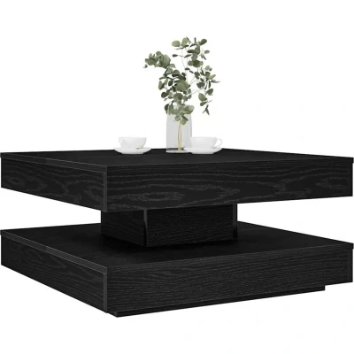 ManoManoGeneral description Experience the 360-degree rotating coffee table, designed to enhance your living space with its modern aesthetic and practical function. The coffee table conveys harmony and order with its stylish design, creating an eye-catcher in your living room. Technical specifications Colour: Black Material: Engineered wood Overall dimensions: 70 x 70 x 34.5 cm (W x D x H) Total weight capacity: 20 kg 360-degree rotatable tabletop Assembly required: Yes Usage The living room table is designed with a 360-degree rotatable tabletop, allowing you to easily adjust it to suit your needs. The functional design provides ample storage space with an additional lower layer for storing books, magazines, or other items, keeping your living area organized and clutter-free. Other information Easy to maintain: Thanks to its smooth surface, the table is easy to clean with a damp cloth and requires less maintenance.