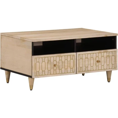 Add a touch of elegance to your living room with this stylish coffee table. Solid mango wood: Solid mango wood is a strong, tropical hardwood that makes sturdy furniture. Its beautiful wood grains make every piece of furniture slightly different from the next. Made of solid mango wood, the side table is durable and stable.Ample storage space: This sofa table offers ample storage space to keep your essentials well organised and within reach.Sturdy tabletop: The sturdy tabletop of the living room table is perfect for placing your drinks, food and other decorative items.Practical door: Keep your essentials free from dust by hiding them behind the door of this couch table.Hand-carved design: This centre table with hand-carved patterns brings the luxury of elegant charm to your interior, being the focal point of your room. Good to know:Each item is unique with variations in colours and grains. The delivery is random, ensuring the exclusivity and individuality of your product.