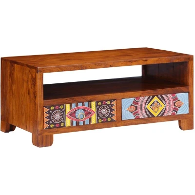 Relax and enjoy entertaining your family and friends around this coffee table! Robust and stable material: Solid acacia wood is known for its strength and durability. Its diverse colours and unique grain patterns give it an attractive appearance. With good stability and resistance to weathering, it is ideal for crafting indoor and outdoor furniture.Ample storage space: This coffee table provides ample storage space for keeping your magazines, books, DVDs, remote control and other small items well-organised and within reach.Stable and sturdy tabletop: The sturdy tabletop is ideal for placing your drinks or any other necessities you need close at hand.Easy to maintain: Thanks to its smooth surface, the coffee table is easy to clean with a damp cloth and requires less maintenance. Good to know:Each item is unique with variations in colours and grains. The delivery is random, ensuring the exclusivity and individuality of your product.