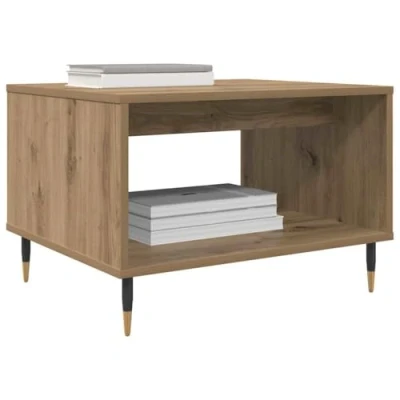ManoManoGeneral description This Industrial Style Coffee Table brings a touch of contemporary elegance to your living space. With its rectangular shape and smooth, matte finish, it exudes a modern industrial charm that's balanced with practicality for everyday use. Perfect as a centerpiece in a cozy living room, it offers a stylish solution for displaying your favorite décor items or settling your morning coffee. The table is thoughtfully constructed with engineered wood and supported by iron legs that taper elegantly, adding to its unique sophistication. Technical specifications Colour: Artisan oak Material: Engineered wood Overall dimensions: 60 x 50 x 40 cm (L x W x H) Storage number of: 1 Assembly required: Yes EAN: 8721288763334 SKU: 879607 Brand: vidaXL Usage To preserve its pristine look, it requires regular dusting with a soft, dry cloth. Avoid using harsh chemicals to keep the surface flawless, ensuring your table remains in excellent condition for years. Other information