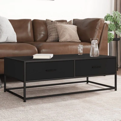 vidaXL Coffee Table Black Engineered Wood & Metal, Modern Industrial Style, 100x50x35cm, Ample Storage, Living Room Decor