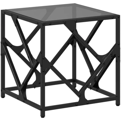 vidaXL Coffee Table Black Glass Top, Engineered Wood & Steel Frame Modern Table, End Side for Living Room, Hallway, Bedroom 40 x 41 cm