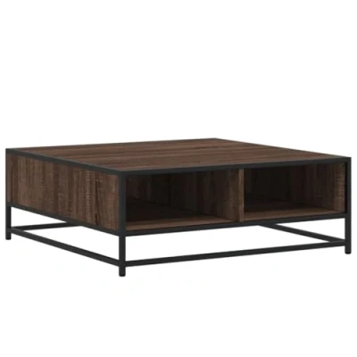 ManoManoGeneral description Relax and enjoy entertaining your family and friends around this stylish coffee table. The combination of engineered wood and a metal frame not only enhances your interior with an industrial flair but also ensures durability and stability. Technical specifications Colour: Brown oak and black Material: Engineered wood, metal Overall dimensions: 80 x 80 x 30 cm (L x W x H) Compartment dimensions: 38 x 80 x 15.5 cm (L x W x H) Assembly required: Yes SKU: 848773 Usage Stable and sturdy tabletop ideal for placing drinks and other necessities. Ample storage space for magazines, books, DVDs, remote controls, and other small items. Other information