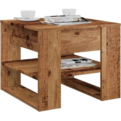 ManoManoGeneral description Relax and enjoy entertaining your family and friends around this stylish coffee table. Its design combines functionality with a rustic charm, making it a perfect addition to any living space. Technical specifications Colour: Old wood Material: Engineered wood Dimensions: 55.5 x 55 x 45 cm (W x D x H) Maximum weight capacity: 60 kg Assembly required: Yes Usage Provides ample storage space for magazines, books, DVDs, remote controls, and other small items. The sturdy tabletop is ideal for placing drinks and other necessities within reach. Easy to clean with a damp cloth due to its smooth surface. Other information