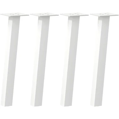 These coffee table legs combine form and function. It's an ideal choice for customising your coffee table. Durable material: This coffee table leg is made of powder-coated steel, making it sturdy and long-lasting enough to support a heavy tabletop. Practical design: This coffee table leg includes soft rubber pads, minimising floor scratches. Additionally, the bracket features pre-drilled holes and delivery-included screws, which can be used for fixing the leg to the tabletop (not included), making it easy to assemble. Modern aesthetics: The coffee table leg offers a sleek and contemporary look. Its clean lines and geometric design enhance the overall appearance of the furniture. Good to know: The delivery only contains table legs, the tabletop is not included. Colour: White Material: Powder-coated steel Overall height: 42 cm Tube dimensions: 40 x 40 x 1.2 mm (L x W x T) Bracket dimensions: 100 x 100 x 4 mm (L x W x T) Inclined 96 degrees With soft rubber pad Recommended use: coffee