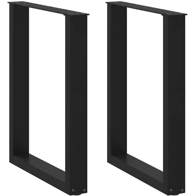 vidaXL Coffee Table Legs U Shaped Black Steel, Adjustable Levelers, Modern Design, For Living Room/Dining Area 60x(72 73) cm