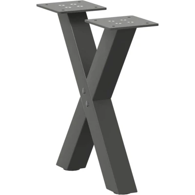 General description These coffee table legs combine form and function, making them an ideal choice for customizing your coffee table. The X-shaped design ensures stability and support for a heavy tabletop. Technical specifications Colour: Anthracite Material: Powder-coated steel Overall size: 37 x (30-31) cm (W x H) Bracket dimensions: 100 x 100 x 4 mm (L x W x T) Tube dimensions: 40 x 40 x 1.2 mm (L x W x T) Recommended use: coffee table Assembly required: Yes Delivery contains: 2 x Coffee table leg, Screws (M5x18mm) for fixing legs with table top Installation The metal table leg includes pre-drilled holes and screws for easy assembly, allowing you to fix the leg to the tabletop (not included). Adjustable foot levelers ensure stability on uneven floors and minimize floor scratches. Usage These legs are designed for use with coffee tables, providing a modern aesthetic with clean lines and a geometric design that complements any suitable tabletop. Other information