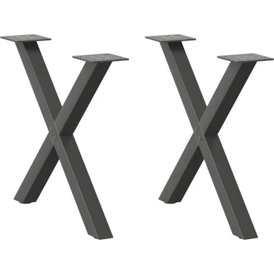 VidaXLThese coffee table legs combine form and function. It's an ideal choice for customising your coffee table. Durable material: This furniture table leg is made of powder-coated steel, making it sturdy and long-lasting.Sturdy structure: The metal table leg's X-shaped design ensures it can support a heavy tabletop.Practical design: This desk leg includes adjustable foot levelers, ensuring stability even on uneven floors and minimising floor scratches. Additionally, the bracket features pre-drilled holes and delivery-included screws, which can be used for fixing the leg to the tabletop (not included), making it easy to assemble.Modern aesthetics: The table leg has clean lines and a geometric design to improve the furniture's overall look. And it goes well with any tabletop of a suitable size. Good to know:The delivery only contains table legs, the tabletop is not included.