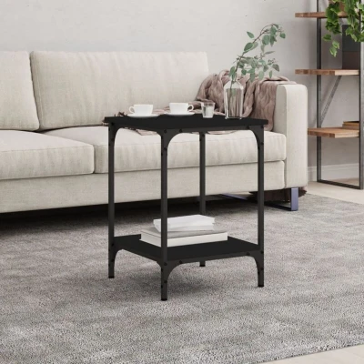 General description Add a touch of elegance to your living room with this stylish coffee table. The engineered wood construction ensures exceptional quality, featuring a smooth surface along with strength, stability, and moisture resistance. This coffee table also includes shelves for ample storage space, keeping your essentials well organized and within reach. The sturdy tabletop is perfect for placing drinks, food, and decorative items, while the metal frame guarantees stability. Technical specifications Colour: Black Material: Engineered wood, iron Dimensions: 40 x 40 x 55 cm (W x D x H) Assembly required: Yes Other information
