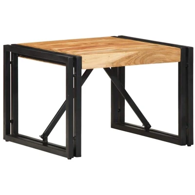 ManoManoGeneral description Relax and enjoy entertaining your family and friends around this stylish coffee table. Made from solid acacia wood, it features a robust and stable design, making it perfect for both indoor and outdoor use. The unique grain patterns and diverse colors of the wood add an attractive touch to your decor. Technical specifications Material: Solid acacia wood with a natural finish, powder-coated iron Dimensions: 50 x 50 x 35 cm (L x W x H) Max. weight capacity: 75 kg Shape: Square Assembly required: Yes Other information Each item is unique with variations in colors and grains, ensuring the exclusivity of your product.