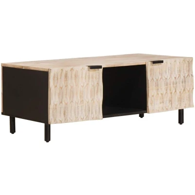 This Wooden Coffee Table is an elegant and functional piece ideal for enhancing any living room ambiance. It features a sleek, rectangular shape that adds a modern touch, while its solid construction promises longevity. With its tasteful design and practical form, this coffee table provides the perfect surface for beverages, magazines, and decorative objects, making it a versatile choice for various users and settings. Solid Mango Wood Build The coffee table is constructed using solid mango wood, offering durability and a robust appearance that withstands daily use. This material choice lends the table its sturdy nature, ensuring stability and support for all your living room items. It is an excellent material for maintaining a warm and inviting atmosphere. Rectangular Shape Designed in a classic rectangular form, this coffee table fits effortlessly into most living rooms, complementing existing furniture with its elegant lines and smooth surfaces. It provides a generous space for placing essentials like coffee cups, books, and decorative pieces. Ample Storage It offers excellent storage capabilities with its integrated shelves and compartments, allowing users to neatly organize remote controls, magazines, or even a laptop. This feature enhances the table's functionality, making everyday living more convenient and clutter-free. Indoor Use Specifically designed for indoor settings, this coffee table is optimal for areas like a living room or a family room. It serves as an ideal centerpiece that encourages relaxation and social interaction among family and friends. Sleek Black and Wood Finish Adorned with a black secondary color, the table's finish combines modern aesthetics with traditional elements, making it a versatile addition to any home decor. This blend of colors enhances the table's visual appeal while fitting seamlessly into diverse styling themes.