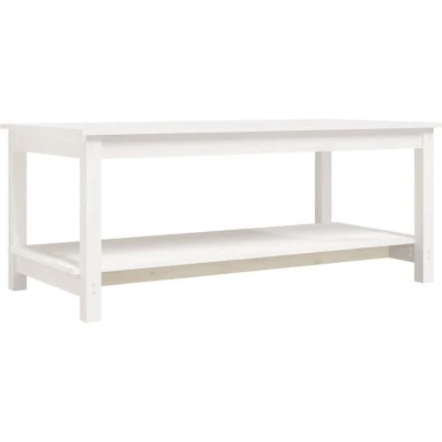 ManoManoGeneral description Add a touch of elegance to your current home decor with this wooden coffee table. Made from solid pine wood, it features a beautiful natural finish with a straight grain and rustic knots, ensuring a unique look for your space. Technical specifications Material: Solid pine wood Colour: White Dimensions: 110 x 55 x 45 cm (L x W x H) Installation Each product comes with an assembly manual in the box for easy assembly. Usage This versatile coffee table can be used in various settings: Living room table Couch table Centre table Accent table End table Other information