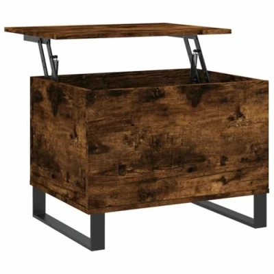 vidaXL Coffee Table with Lift Top Design, Smoked Oak Coloured Engineered Wood Coffee/Sofa/End Table, Modern Metal Legs, Living Room/Den Furniture